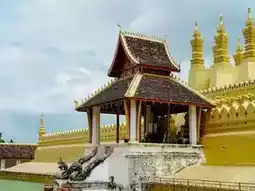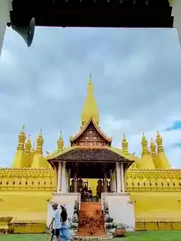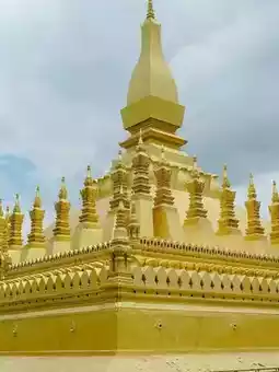 Pha That Luang Vientiane, also known as the Great Sacred Stupa or the World Jewel Stupa, is located in Vientiane, Laos. This large golden stupa stands 45 meters tall with a base width of 69 meters and houses sacred relics of the Buddha inside. With a history spanning over a thousand years, the stupa is a magnificent sight from the outside. Inside, visitors can find various ancient artifacts and numerous old Buddha statues.