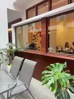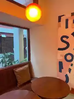 The cafe boasts modern and cozy decor, making it an ideal spot for relaxing or working. The seating area is comfortable and provides a relaxing vibe.