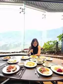 The view from the hotel is just stunning ✨ imagine waking up to clouds drifting through the mountains right outside your window. The room was cozy and stylish, and the whole vibe was super relaxing.