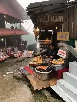 🍵 There's a cafe selling food/coffee and a shop that rents traditional costumes for photography. We didn't rent one, so we don't know the price. It gets crowded in the evenings because the lights are brighter and more beautiful. If you're visiting Sapa, we highly recommend this place 🌟🌟🌟. It's a must-visit spot. You'll definitely take home tons of photos.