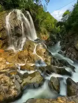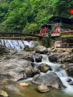 . There are several waterfalls further down. We spent almost 3-4 hours walking and taking photos. It was rainy and foggy on the day we visited, but the light decorations were still beautiful. There was also a traditional dance performance inside. 🌲