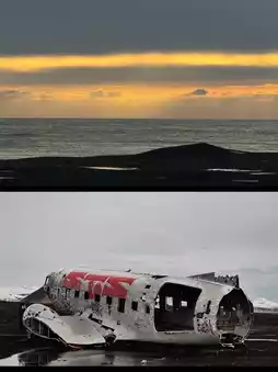 Adjacent to Seljalandsfoss Waterfall, this beach is home to the famous 1973 DC-3 plane wreck ✈️. The solitary aircraft fuselage contrasts starkly with the desolate black sand, making it a perfect spot for dramatic photography.