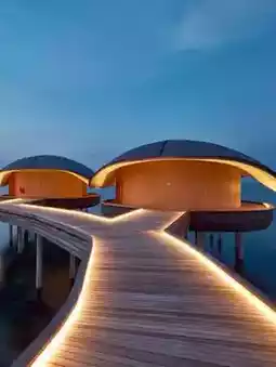 → *The Whale Bar* — 5 meters *below sea level*, an underwater lounge with panoramic views of reef sharks, rays, and schools of fish.