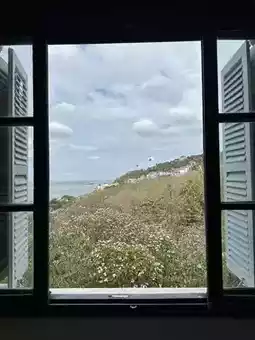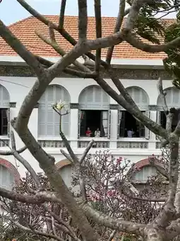 - Outside Bach Dinh Vung Tau is a green natural area blending with the blue of Vung Tau sea in the distance