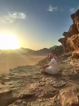 Explore the desert by 4x4 jeep, camel, or even hot-air balloon for a sunrise view you’ll never forget. Visit ancient Nabataean inscriptions etched into the rocks, climb to panoramic viewpoints, and feel the stillness of nature in its purest form. As the sun sets, the sky glows with shades of gold and crimson — and when night falls, the stars blanket the desert in a magical silence.