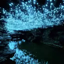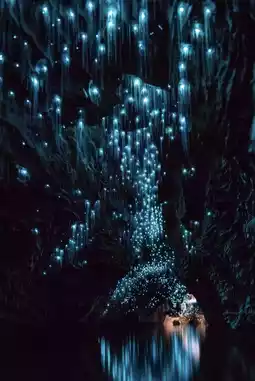 In Waitomo, New Zealand, the glowworm caves are a unique spectacle, as the glowworms here emit a rare blue light, unlike the green glow seen in other parts of the world. Inside the caves, photography, noise, and any form of light are strictly prohibited. Deep underground, a small boat drifts silently on a dark river, revealing a 'galaxy' of glowworms that have illuminated the cave for thousands of years. The icy blue clusters resemble a sky full of stars or snow lotuses blooming on the cliff tops.