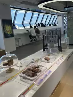 The lounge was designed with an interior that harmonized well with the quiet ambiance of the hotel. The seating arrangement provided ample space between tables, making it a comfortable place to spend time. They offered a variety of desserts, and the signature teas stood out with their well-balanced aroma and flavor.