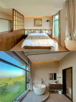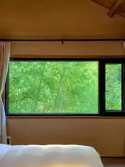 The stunning guesthouses are scattered among the mountains, with endless bamboo forests right outside the window~
