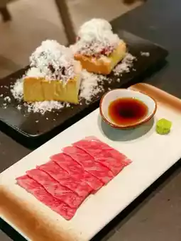 Wagyu sashimi is rich in meat flavor and fat, melts in your mouth, and tastes even better when paired with sauce.