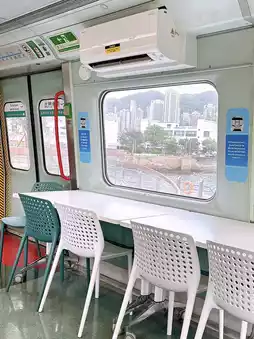 When we come to Wanchai Waterfront, many tourists come to see the view of the Victoria Harbor, but no one will know that there is a waterfront station here, where MTR put the decommissioned fly head on the Wanchai waterfront The iron carriage, also has a multi-purpose room, observation deck, feature carriage, etc