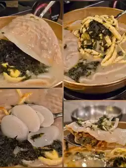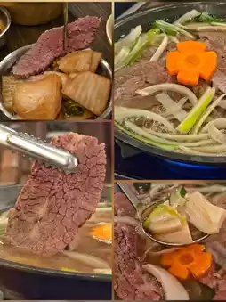 We ordered a medium-sized beef brisket hot pot to share between the two of us. It uses 1++ grade Korean beef, and the pot also contains onions, mushrooms, and other vegetables. The broth is very clear and sweet. The amount of beef is quite generous, covering the entire pot. The meat is tender and flavorful, and dipping it in the onion sauce makes it even more delicious.