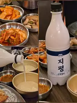 When eating Korean food, you must have some rice wine. We chose to drink makgeolli, which is sweet, rich, and slightly fizzy, making it easier to drink than soju.