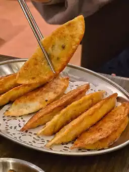 The dumplings are pan-fried to a crispy perfection, and the filling is very rich. They have a bit of spiciness, making them very appetizing.