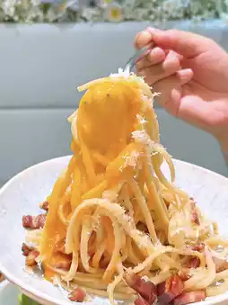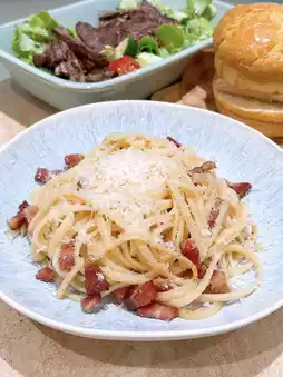 The pasta is very smooth, the sauce is rich, especially the many bacon bits, mixed with black pepper, the whole flavor is fragrant and not greasy