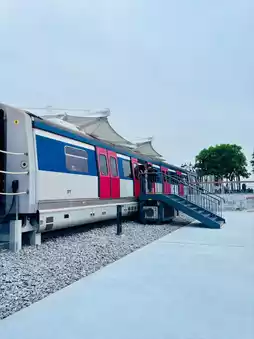 A special "Waterfront Station" has been newly built here specifically for the retired East Rail Line trains. These two refurbished train cars, commonly known as "Fly Head," are filled with memories of Hong Kong people. Each train has traveled over 6 million kilometers, which is equivalent to circling the Earth about 150 times, evoking a deep appreciation for the history of the MTR.