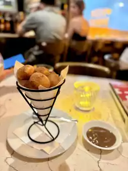 For dessert, we had Pizza Dough-Nuts, small fried dough balls served with Nutella sauce for dipping. We also ordered two special drinks, Pamela and Barry, which were super refreshing! 🍹