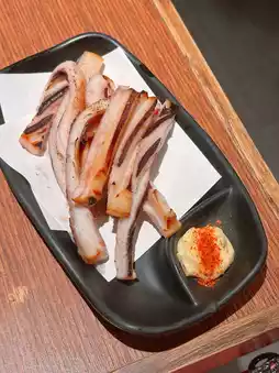Grilled Squid Overnight Dry🦑 A la carte $58💰 The squid is large and thick😱, full of charcoal-grilled aroma🔥 with a great chewiness😗. Surprisingly, every bite is packed with fresh squid flavor😛 and it’s juicy😌.