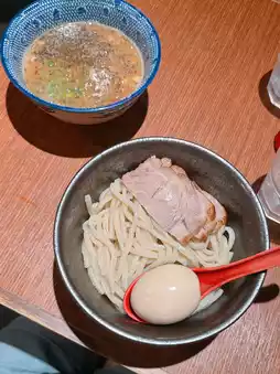 Beef Tendon BLACK Tsukemen (Small 200G)🍜 A la carte $98💰 Includes beef tendon🐄, green onions, onions🧅, char siu pork🐖, egg🥚. The broth is heavily seasoned with black pepper🧂, giving it a rich flavor😉. The beef tendon is tender and flavorful😋. The thick noodles are coated with the broth, bursting with beefy taste👍🏻.