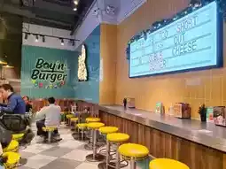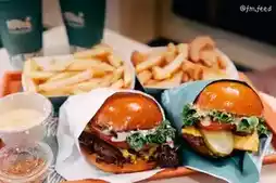The first Farm to Burger burger shop in Hong Kong👩🌾, two floors, the main color of the design is ink green🌳, floor-to-ceiling glass as the facade, the interior is gray and white decoration with retro colors, semi-open kitchen, comfortable seats, upstairs sofa seating, stylish. The shop has won several awards for freshness and quality assurance 👍