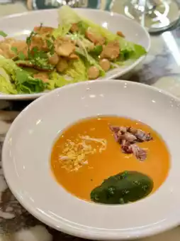 The Spanish frozen soup is refreshing and tastes sweet and sour and appetizing; the vegetables in the time salad are fresh and crisp and feel fresh.