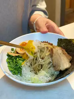 Another bowl of signature noodles, "Authentic Whole Ingredient Tokyo Noodles", has raw egg yolk, spicy minced meat, poached eggs, seaweed, spring onions, bamboo shoots... The whole bowl of noodles is rich in ingredients.