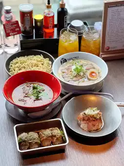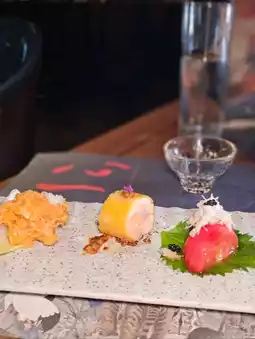 The shiso shrimp tempura salad is crisp and refreshing, while the bluefin tuna sashimi paired with soy-marinated Ranou egg is rich and flavorful.