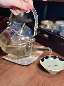 For dessert, the matcha warabi mochi with black honey provides a chewy and sweet finish to the meal.