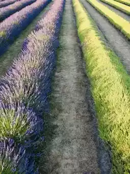 Framing: Choose the flower rows (two rows of lavender forming a “pathway”) or use nearby flower clusters as foreground, with a blurred deep background to create layers.