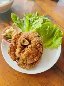 🔻Menu 1: Pork Leg. This dish was a complete surprise! Crispy on the outside, soft on the inside, just as delicious as any Michelin-starred restaurant. The dipping sauce was incredibly spicy.