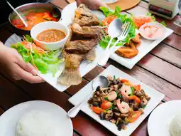 As evening falls 🌙, the atmosphere becomes even more romantic. Dine amidst mountain views with a cool breeze passing by. Enjoy homemade dishes crafted with care by the chef, such as tom yum, fried fish, and stir-fried vegetables from nearby gardens. The flavors are bold yet perfectly balanced, offering a homely taste. Pair it with a chilled drink while soaking in the sounds of nature—it's a moment so delightful you'll wish time could stand still.