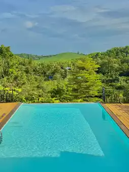 At Veravian Resort, surrounded by mountains and fresh air all day long, the atmosphere is peaceful and truly perfect for relaxation. The rooms are simply designed yet charmingly, warm, and comfortable. There's also an outdoor pool with panoramic mountain views. Taking time to slowly soak in the tranquility and nature around us is our favorite part of life.