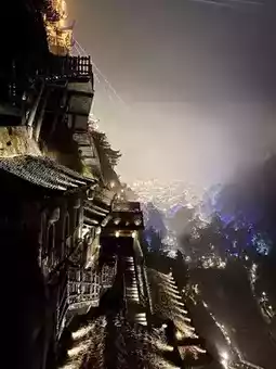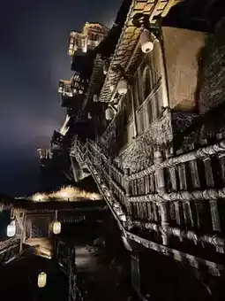 Walking across the glass skywalk, you’ll feel like you’re floating above the valley 🌌, while at night, lanterns light up the wooden houses, giving the whole village a dreamlike glow. 🏮✨