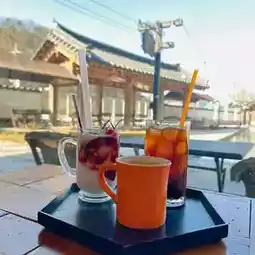 The harmony of the traditional Hanok backdrop and the soothing background music was perfect. The chocolate cake was absolutely delicious! 🍰 The cloudy weather added a magical touch to the photos, enhancing the overall vibe. Note that the café is closed on Sundays, and for guests aged 36 months and older, a one-drink-per-person policy applies. This is a highly recommended spot to experience the summer Hanok charm! 👍