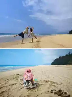 🌟Hotel Trip Moments: The photographer has some skills, the emotional value is maximized, half an hour in the morning on the grass and beach, freezing what it means to be happy on a cloudy day.