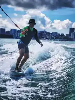 Tailwave surfing: Wave boat + instructor + surfboard + surf suit + traction rope