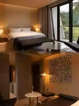 The view rooms feature 180-degree floor-to-ceiling windows where you can wake up to mist-shrouded rainforest canopies. Interiors showcase premium linen fabrics, handwoven rugs and other natural materials, with Hansgrohe bathroom fixtures reflecting exquisite attention to detail. Specially designed soundproofing lets you immerse in nature undisturbed.