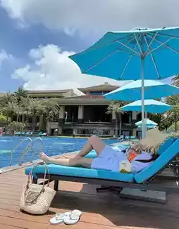Relax on a lounge chair with the sea breeze in the afternoon,
