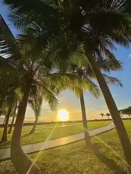 🌊 Wave crests break into golden light, coconut grove silhouettes sway…