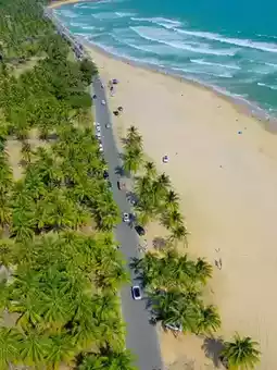 🚲 Ride a small electric scooter through the coconut tree-lined road, blue sea + swaying palms = a natural photo studio!