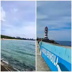 The soul of this bay is undoubtedly the red and white lighthouse standing above the blue waves. It speaks no grand words, simply existing silently between sea and sky. By day, it is a steadfast coordinate; at dusk, when the sunset gilds it with warm gold, it becomes a “heart mark” guiding the inner self.