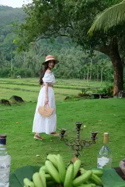 In front, there are rice fields and coconut groves, with rainforest mountains ⛰️ behind.