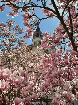 From late March to early April each year, thousands of cherry blossom trees bloom along the Tidal Basin. The pale pink Yoshino cherry and the deep red Kwanzan cherry intertwine to create a stunning scene. It's truly breathtaking when they're in full bloom‼