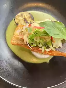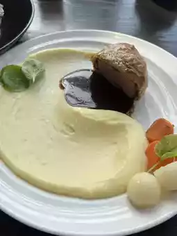 The Beef Wellington, one of Gordon Ramsay's signature dishes, was delicious, but the grilled salmon we had here was simply unparalleled—better than any grilled salmon I've ever tasted!
