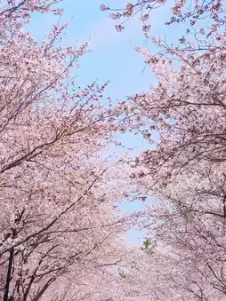 - Arched cherry blossom path maintained by professional horticulturists, the ground is covered with a carpet of petals