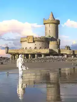 A lonely castle perched on the coast, walking on the beach, as if breaking into a medieval oil painting, navigate to "CCTV Weihai Film City"