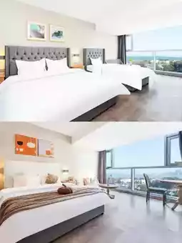 There’s a square right downstairs with plenty of dining, shopping, and convenience options. The elevator takes you straight to the room—no need to lug your luggage upstairs. The beach is just a few minutes’ walk away, or you can stay in and enjoy the sea view from the room—pure bliss!