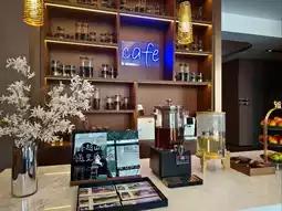 The lobby also has free tea and coffee, as well as Weihai postcards.
