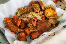 ▫️ Gao Kee Wu Chun Chuan Fried Chicken Steak: Cheese filled with chicken, fish seed rice balls are stunning