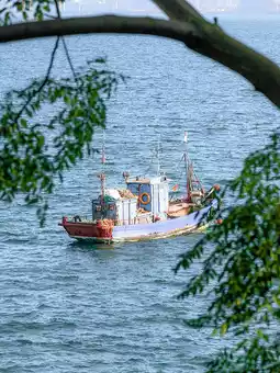 Haiyuan Park Wooden Canyon: Overhead fishing boat + sparkling sea