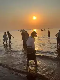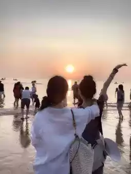 P1, P4-P6 are at International Bathing Beach: There are lots of young people here, with two universities nearby, creating a great atmosphere. Friends going to play are advised to wear flip-flops for easier wading, and bring a bucket to collect seashells and rinse feet afterward. We didn't bring one and had to wait a long time to borrow from others.